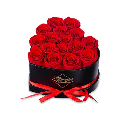 16 Preserved Roses in a Heart-Shaped Box – A Timeless Gift of Love