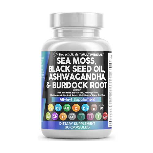 Clean Nutraceuticals Sea Moss & Black Seed Oil Capsules – A 15-in-1 Superfood Supplement for Immune Support and Overall Wellness