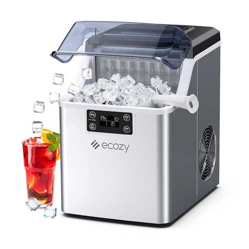 Ecozy Countertop Ice Maker – 45lbs Per Day, 24 Cubes in 13 Mins, Self-Cleaning Stainless Steel Ice Machine for Home, Bar, Office & Parties