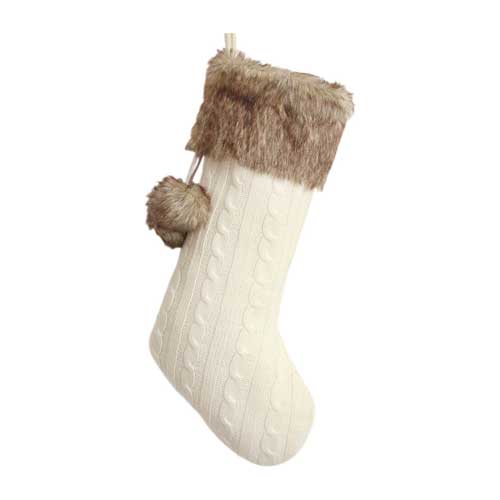 Ivory Faux Fur Fluffy Pompom Ball Christmas Stocking