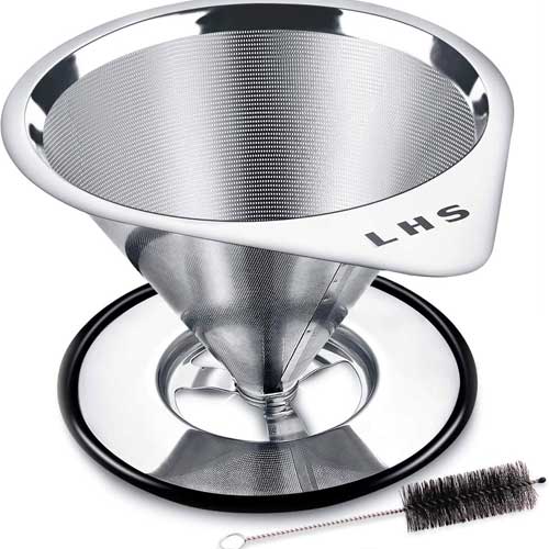 Pour Over Coffee Dripper Stainless Steel LHS Slow Drip Coffee Filter Metal Cone Paperless