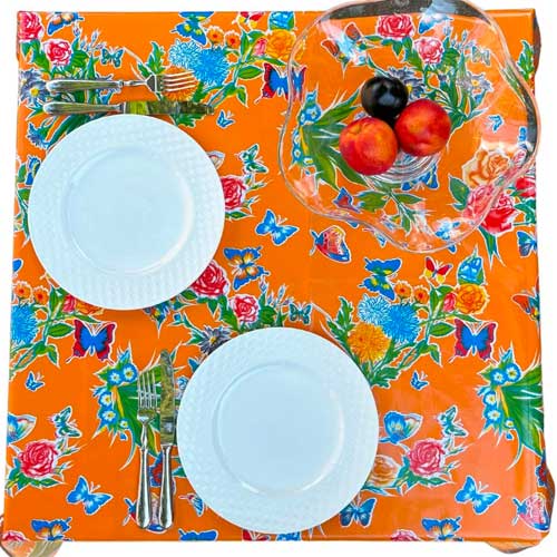 Mexican Oilcloth Tablecloth – Orange Mariposa Rectangle