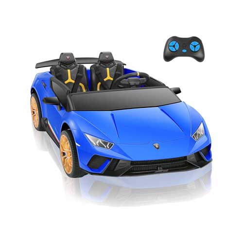 This realistic Lamborghini ride-on car features a two-seater design, 12V battery, and top speeds of 4 mph. With dual suspension, a safety belt, and MP3 connectivity, it’s a luxury ride for little drivers.
