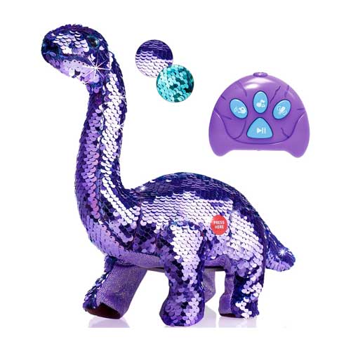 This interactive dinosaur toy is packed with fun! Covered in color-changing sequins, it walks, roars, sings, and even repeats what you say. The wireless remote control makes it easy to operate, while its kid-safe, non-toxic design ensures hours of worry-free fun.