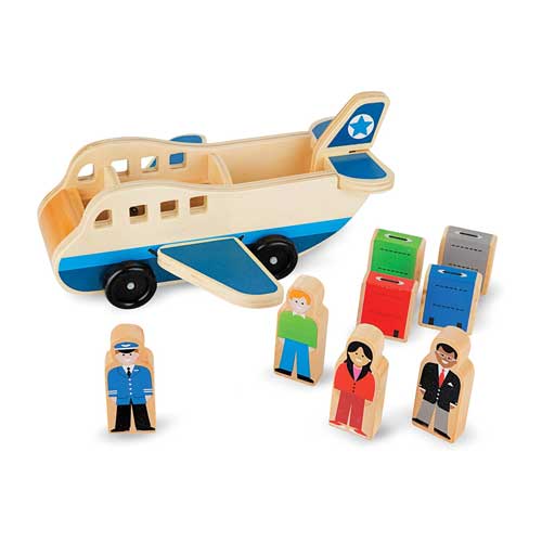 This nine-piece airplane set includes a wooden plane, four play figures, and four suitcases. Perfect for sorting, matching, and imaginative play, this toy helps develop fine motor skills and problem-solving abilities.