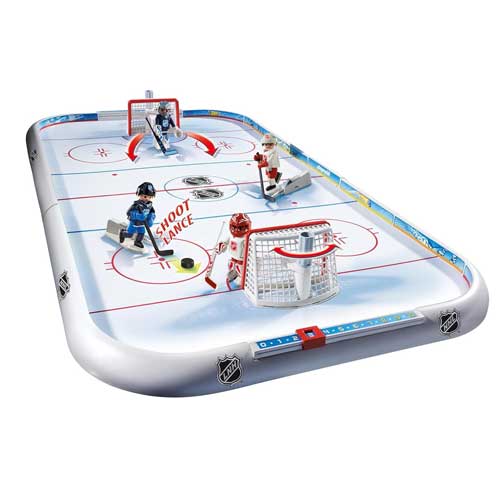 Skate into action with your own Playmobil NHL Hockey Arena! Each player features a movable arm and hockey stick for realistic shooting action. Use the goalie’s joystick controls to block shots and customize the team with included NHL decals.